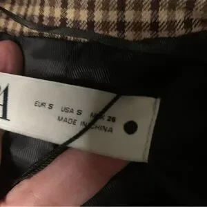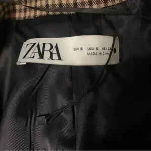 Pre-owned in like-new condition (still has part of hang tag attached) multicolor brown checkered houndstooth double breasted career old money preppy blazer from Zara. Women’s small.
