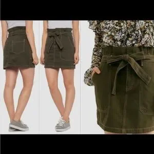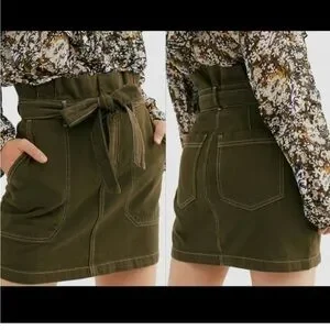 Free People Splendor in the Grass olive khaki paper bag waist cargo skirt