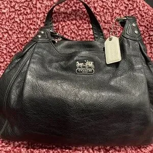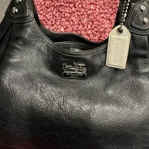 Sophisticated Coach shoulder bag in black leather. Perfect for daily use.
