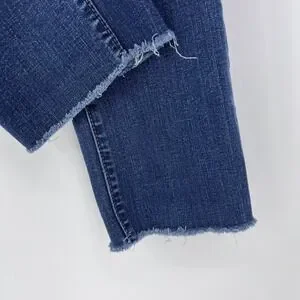 Keywords: Distressed Hem, Raw Edge, Indigo, Stretch Denim, Casual, Classic, Wardrobe Staple, Modern, Minimalist, Versatile, Everyday Wear, Loft Denim, Dark Wash