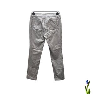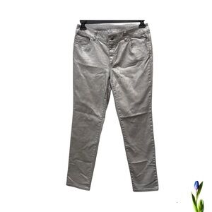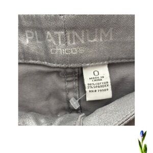 Chico's Platinum Jeans Gray Silver Coated Metallic foil Shimmer Straight, Cotton