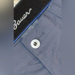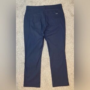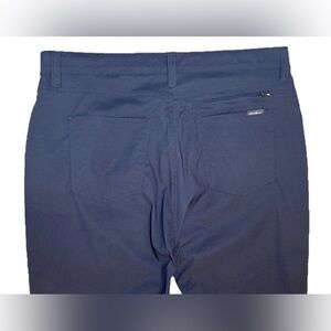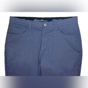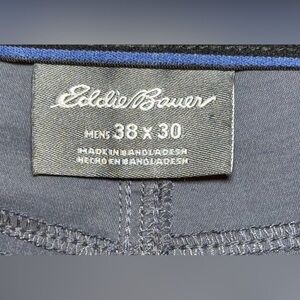 The product is a pair of Eddie Bauer Nylon Pants in men's size 38 x 30, designed in a gray color with a solid pattern. Made of nylon and spandex, the pants feature a zip / snap closure and are ideal for outdoor activities such as hiking and traveling. They have a lightweight and stretchy fabric, woven with 2 back pockets (and a bonus zip pocket) and 3 front pockets, making them practical and comfortable for various occasions. Perfect for those who appreciate a blend of style and functionality in their activewear. Excellent condition.
