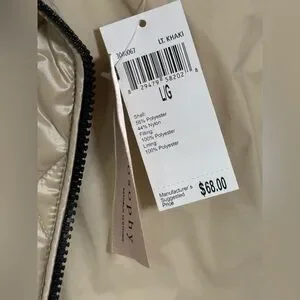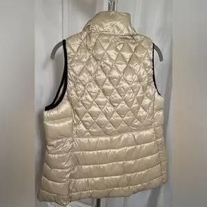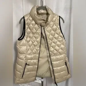 Chic quilted design with a sleek finish. Gorgeous metallic light khaki (*think champagne*) color w/black detailing, elevating the sophistication of this staple piece even further! Ideal for layering in cooler weather. Offers a stylish and comfortable fit. Size LARGE. NWT never worn. Pit to pit measurement is 17 1/2 inches