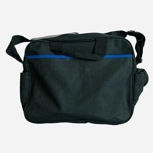 Stay organized and stylish with the Voyager Bag Black Blue Canvas Laptop Messenger Bag. Measuring 16” x 2.5” x 12”, this contemporary courier bag features multiple compartments, including a front pocket, two side pockets for pens and cell phone, and a back pocket for added convenience. Crafted from durable canvas, it’s designed for daily commuting, business travel, or casual use. The adjustable carrying strap with secure hardware ensures comfortable wear, while the zipped main compartment keeps your laptop and essentials safe. Never used, this bag combines functionality with modern style. Perfect for work, school, or travel.