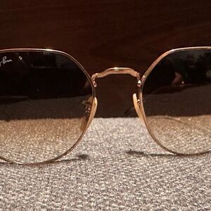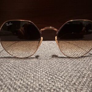 Ray-Ban Jack RB3565 sunglasses. Gold metal frame with brown lenses. Sleek geometric silhouette. Lightweight design for everyday wear.