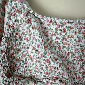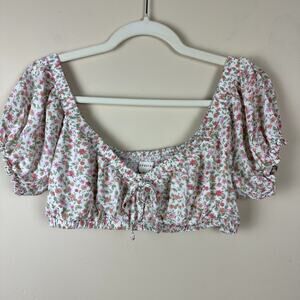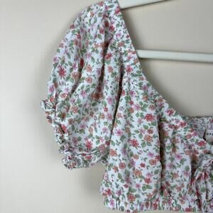 Aeropostale Floral Cottagecore Crop Top Womens L Milkmaid Festival Puff Sleeve