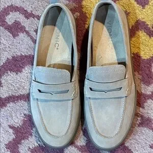 NWOT Vionic Grey Uptown Suede Leather Penny Loafers Size 7.5