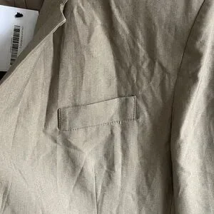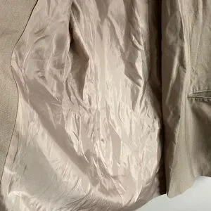 Clean single-breasted silhouette from OAK + FORT. Notch lapel and two-button front. Welt pockets and subtle tailoring. Neutral beige tone for versatile styling.