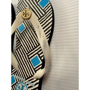 Tory Burch Flip Flops Womens Size 9 Black White Blue Geometric Striped Thong