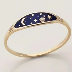 Golden Plated Copper Ring with Enamel Sky Design Moon and Stars Size 7