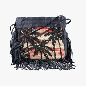 Saint Laurent Yves Helena Fringe Bucket Multicolor Canvas Shoulder Bag