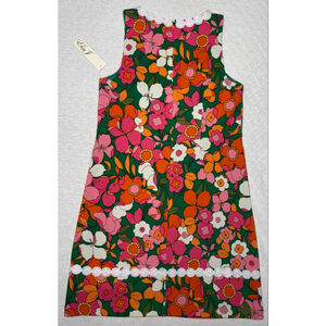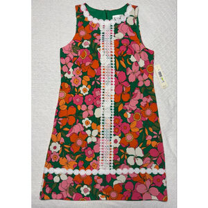 NWT Eliza J Retro Style Bold Multi-color Floral Lace Trim Mini Shift Dress SZ 4