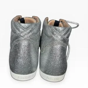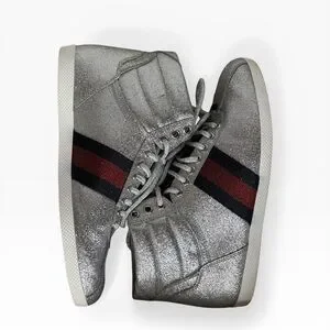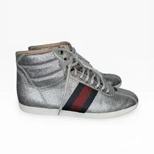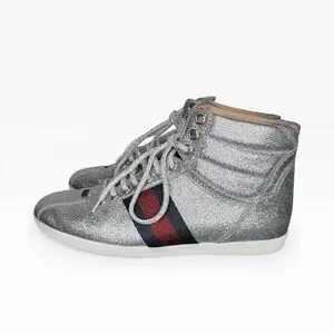 Gucci Silver Glitter Sneakers with Red and Blue Stripes Size 37
