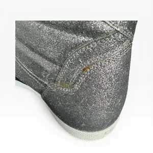 Sparkle with Gucci's silver glitter sneakers. Features iconic red and blue stripes. Stylish and eye-catching.
