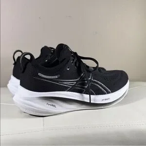 Lightweight running shoes with cushioned midsole. Breathable mesh upper and secure lace closure. Sleek Asics stripes for style. Thick white sole for support and shock absorption.