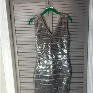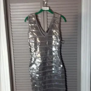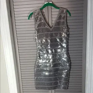 Dazzle in this shimmering silver backless dress. Ideal for glamorous nights.