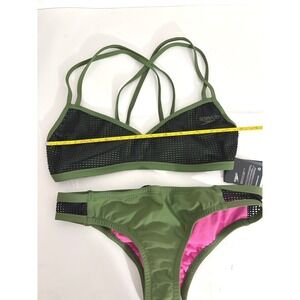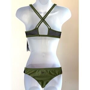 Speedo Athletic Turnz Endurance Practice Bikini Mesh Strappy Swim Set Olive Sz S