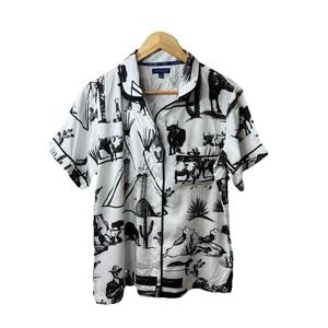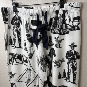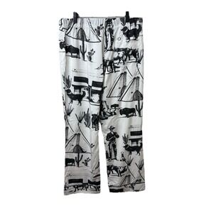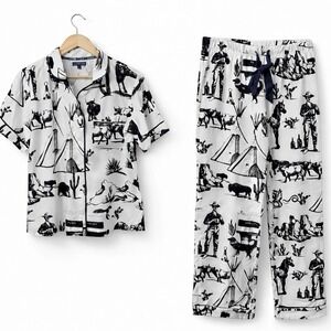 Katie Kime Marfa Texas Toile Pajama Pants Set White & Black Cowboy Western Sz S