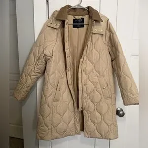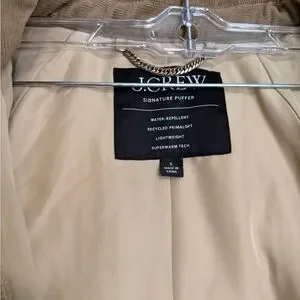 Barn style J. Crew Quilted Puffer Coat jacket in Beige with Corduroy Collar