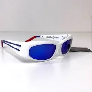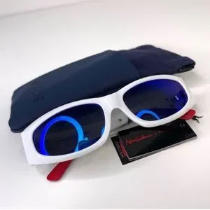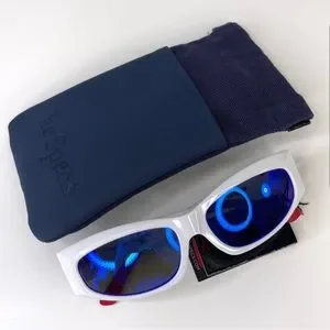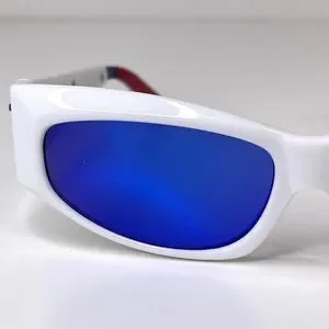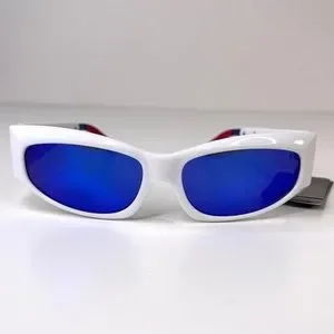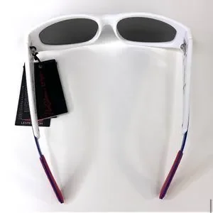 LE SPECS Adam Selman The Edge Sunglasses NEW White WIth Blue Mirror Lenses