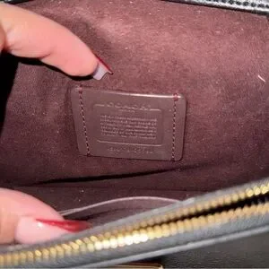 Elegant Coach crossbody with signature pattern. Ideal for daily wear. Compact and stylish.