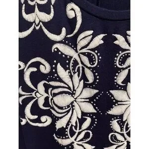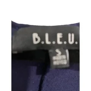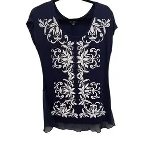 B.L.E.U. Cap Sleeve Hi Low Embroidered Embellished Navy White Top Size Small