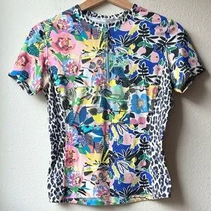 Johnny Was Multicolored Zip Swim Layla Surf Shirt Top Size Small