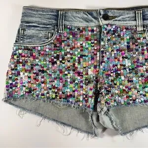 Turn heads with these authentic Joe’s Jeans sequin denim shorts. This rare, collector-grade piece is heavily embellished with high-shine sequins and intricate beading over a classic black denim base. The 2% spandex blend ensures a comfortable, figure-hugging fit that moves with you, making them ideal for concerts, beach clubs, or a bold "Street-Luxe" look.
