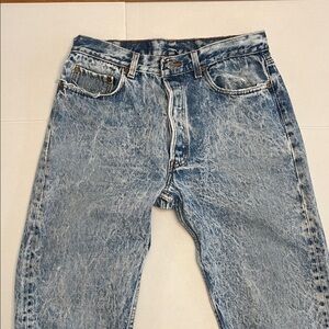 Vintage 80’s Levi’s 501 acid wash. Distressed worn in perfectly button fly straight leg denim jeans
