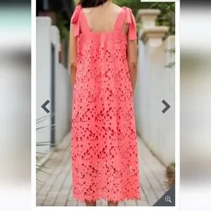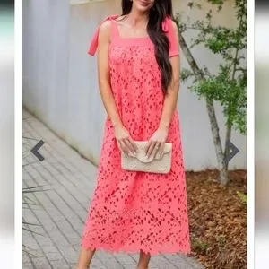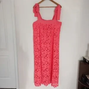 Renee C It's The Dream Coral Pink Lace Midi Dress Size Large
