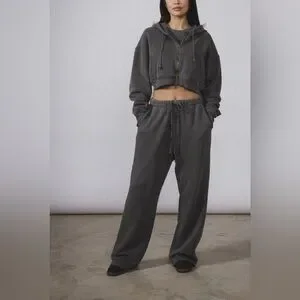 Elwood sweat set - Core Straight Leg Sweatpant and Babydoll Crop Zip Hoodie in Vintage Olive. Hoodie size M and sweatpants size S. Used the photo of the grey set to show the fit of both hoodie and pants, but it’s the olive green version! Worn a few times, great condition