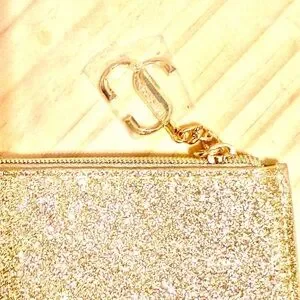 JIMMY CHOO, NWT, Parfums Mini Gold Sparkling Glitter Coin Purse, Credit Card Pouch.