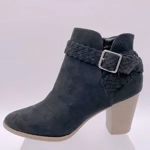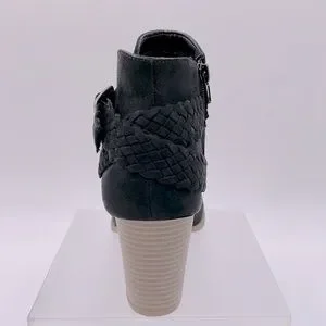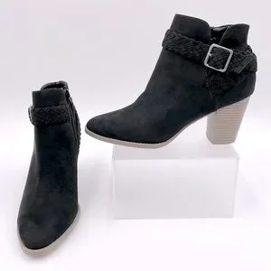 SM New York Barbie Black Suede Boots Braided Accent Ankle Boot 3” Heel - 7.5