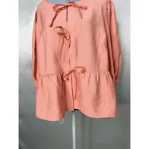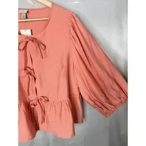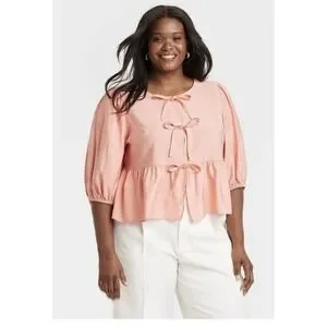 New with tags Ava & Viv pink tie-front peplum blouse in a flattering, flowy silhouette.