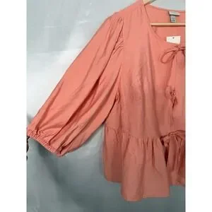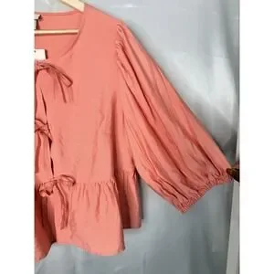 Ava & Viv Pink Tie Front Peplum Blouse XXL Elbow Sleeve Rayon NWT