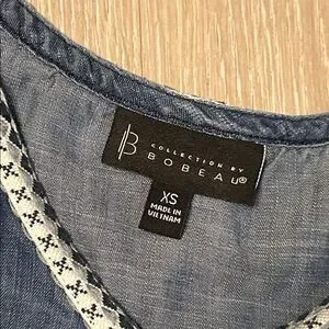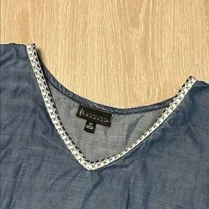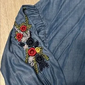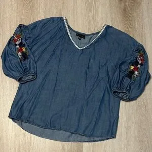 Bombeau Oversized Chambray 3/4 Floral Embroidered Puffed Sleeve Top Sz XS