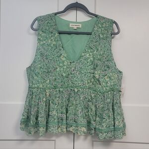Step into spring with this darling Lucky Brand sleeveless blouse! Featuring a dreamy sage green floral print, this top perfectly captures the cottagecore and boho-chic vibes you've been looking for.