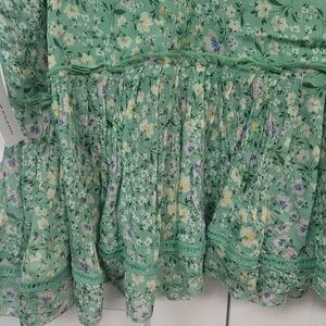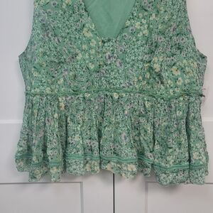 Lucky Brand Green Floral Ruched Ruffle Peplum Blouse - Boho Cottagecore