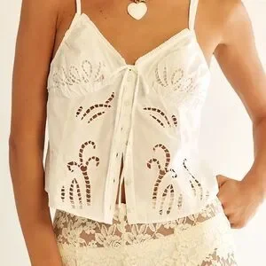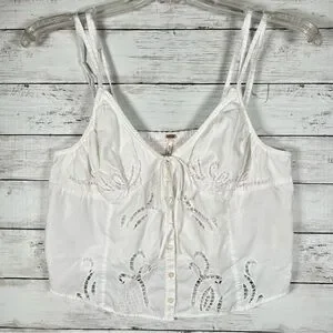 Free People Sweet Sammi Eyelet Cotton Cami Top White XL