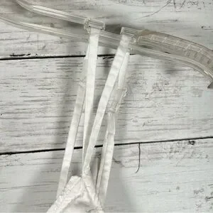 Features: Poplin fabrication, V-neckline, bow-tie at center bust, button-front closure, Battenberg eyelet lace detailing, double-strap design with adjustable fit, smocked backing