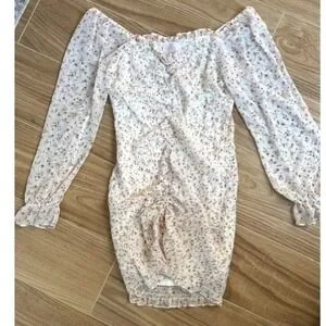 romantic, feminine, soft, delicate, vintage-inspired, floral, dreamy, dainty, coquette, cottagecore, romanticcore, balletcore, soft girl, fairycore, french countryside, prairie chic, vintage romance, pastel aesthetic, ruched, puff sleeve, long sleeve mini, fitted silhouette, sweatheart neckline, bodycon, milkmaid inspired, sheer chiffon, ditsy floral, soft mesh, breathable fabric, spring dress, garden party, bridal shower, vacation, resortwear, brunch outfit, bridal shower, wedding shower