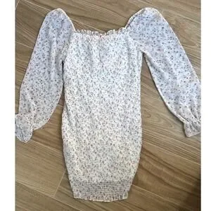 Juicy Gossip Smocked Dainty Floral Mini Sheer Dress 12 Cottage Coquette Soft