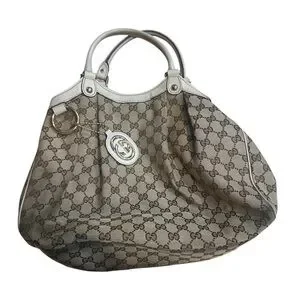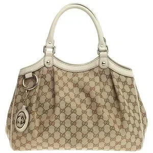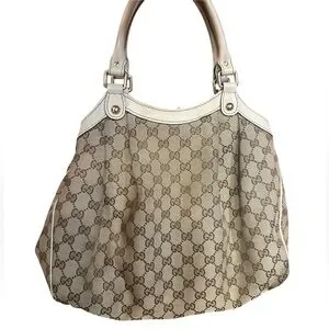 GUCCI Beige/White GG Canvas Medium Sukey Tote Bag