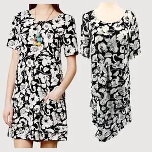 Anthropologie Maeve Zola Floral Shift Dress Black Ivory 2