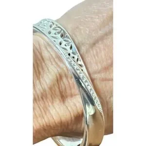 Brighton bangle silver tone with wave of Swarovski crystals, hinged 6" vintage
