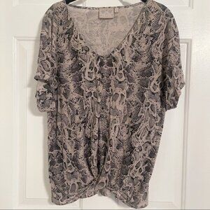 Moon Snake Print V-Neck Twist Front Knot Short Sleeve Top