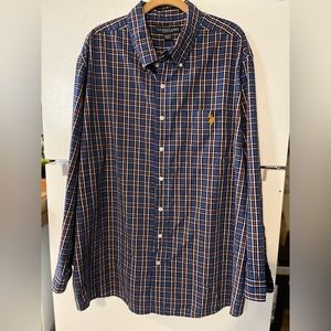 US Polo Assn Mens 2XL Button Up Shirt Blue Orange Long Sleeve, Big Tall