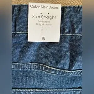 New with tags 470 Boston blue Calvin Klein Slim straight leg dark wash women’s size 18 blue jeans. Jeans have some stretch to them. Thanks :)