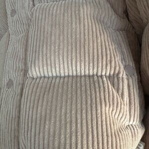 Keep your child warm and stylish with this cozy pink corduroy puffer jacket. Perfect for chilly days.
