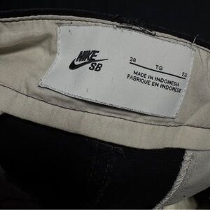 Nike skate shorts showing visible SB logo on inner waistband. Black exterior with cream inner lining. Straightforward, skate-ready design.